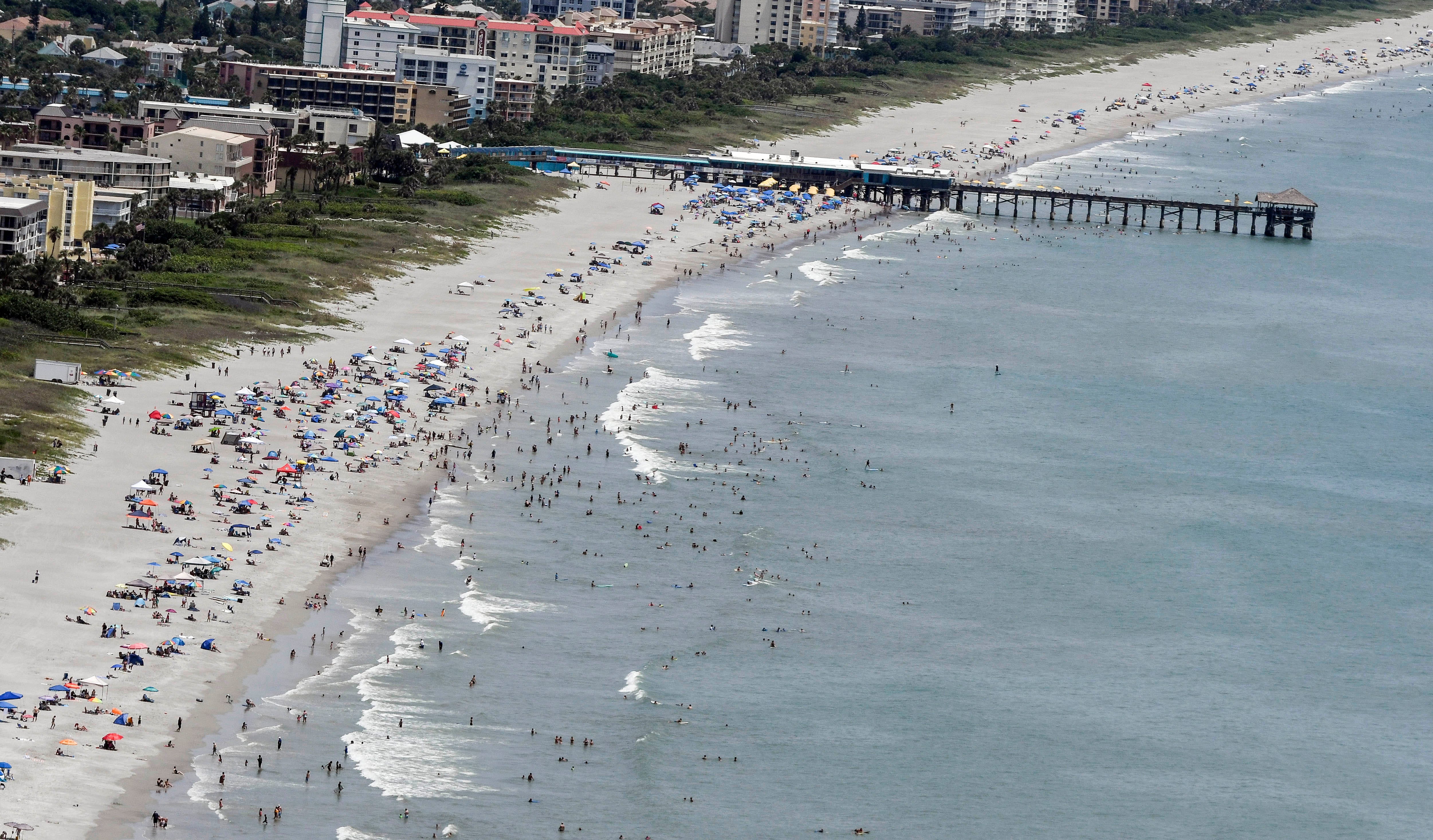 Surging coronavirus cases in Florida had many wary of going to the beach Saturday, with many staying home and most spreading out from one another.